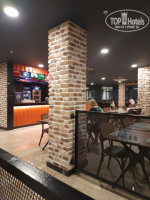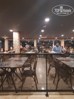 В снэк баре с 12 до 16 - фаст фуд. Сидя за столиком по меню, делаешь заказ официанту, и индивидуально готовятся блюда. Бургер, крылышки, пицца четыре сыра, паста и т.д. Очень достойно.