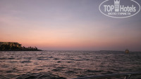 Интересно, что в этом отеле вход в воду (как в море, так и в бассейн) разрешён только с 7:00 до 17:00 или 18:00. Спасатели дежурят на пляже и у бассейнов круглосуточно. Гулять по воде можно до 7:00, а вот купаться — только когда спасатель поднимет зелёный флаг. Море было тёплым, словно парное молоко, и я не чувствовала разницы между температурой воды и воздуха. Погода нас очень порадовала.