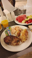 Основное место приёма пищи - огромное пространство на 0 этаже, даже не знаю как назвать, столовая это слишком ничтожное слово. Время приёма пищи четко обозначено, но если вы придете в неурочное - вас не прогонят. На завтрак выставлялись нарезки местных колбас, сосиски, рулеты, сыры, несколько видов масла и мягких сыров (масло в индивидуальных упаковочках не советую, маргаринистое), выпечка, блинчики, тосты с сыром (классные), пара супиков, омлеты и глазунья, вареные яйца, много овощей, оливок, большой выбор фруктов, пицца (была в любое время, несколько видов), сухие завтраки, сухофрукты, лукум, халва кунжутная, варенья, сиропы... Советую попробовать варенье из розы и розовый лукум - это сказочно вкусно.