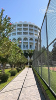 Еда: только жареное и тушеное, гриля нет, гезлиме 1 раз в неделю, мороженое 3 раза. Еда однообразная, фрукты - яблоки, мандарины, арбуз и дыня. Из плюсов-вкусное вино, белое, розовое, красное, наливать самим, самообслуживание. Также удобно, что за номером закреплён стол в столовой, ощутили это, когда понаехали немцы и стояли очереди за едой.