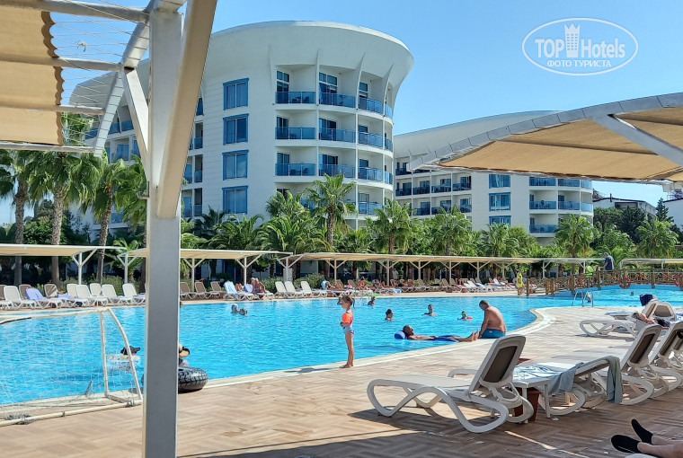 Отличный отдых с друзьями. Целый год ждёшь и вот оно, море, солнце. Тур оператор Анекс тур. Как обычно день прилёта и день отлёта минус и полных 10 дней. Приехали в отель в 22-00, а забрали в 2-30 ночи вобщем украли два дня. Ох уж эти чартеры. Ну да ладно. Отель очень красивый, зелёный и ухоженный. Жили в корпусе ближе к морю. Заранее оплачивали номер с видом на море. И не разу не пожалели. Номера чистые и уютные. Уборка как и вовсех отелях Турции. Постельное белье меняли з раза за 10 дней. Полотенце каждый день. Мини бар пополняли каждый день. Персонал вежливый, всегда готов помочь. Анимация присутствует, аниматоров почти невидно. Море отличное, часто штормило, но так классно попрыгать на волнах, берег песчано-галечный. Лучше взять аквашузы(коралки) мы взяли, но так ими не пользовались. Нам было нормально. Хороший массаж ног. Вобщем отдых удался. Чего и вам желаю. Но молодёжи будет скучно. Обязательно вернёмся в этот замечательный отель.