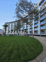 Территория отеля небольшая, но впринципе есть всё для комфортного отдыха. Я переживала, что будут холодные бассейны для ребёнка, но нет. На улице детский бассейн был очень тёплый. Взрослый большой чуть холоднее, но тоже тёплый. Крытый большой бассейн хорошо подогревают, а маленькие крытые почему то холодные, хотя подогрев работает. На улице возле бассейна бар Лёд работает с 10 до 24.00. Бесплатно шампанское, коктейли алк и безалкогольные, виски, джин. Хотелось, чтоб на баре работал бармен в перчатках! Возле бассейна не хватало урн для мусора,пустые стаканчики валялись,т.к.не куда их было выкидывать. Так же не хватало столиков маленьких возле бассейна, чтоб поставить стаканчик. Теперь про питание: питание в отеле в общем хорошее,но я видела и лучше. Выбор есть, голодными не останешься. Но если сравнивать с отелями сети Мираклеон, то там больше выбор. Хочу отметить, что коктейли делают вкусные, стараются, молодцы. Пиво хорошее, шампанское вкусное. Очень удобно, что перекусы работают до 12 ночи. Есть разные пиццы, бургеры, картошка фри, нагетсы, сосиски, что то мясное типа ребрышек свиных или мясо отварное или еще что то, печенье. Есть детские соки, йогурты, питание для малышей в баночках, мороженое, всё в доступности. Из негатива, неприятно смотреть, как женщина повар возле пиццы сначала столешницу протирает, потом пиццу этими руками без перчаток перекладывает с одной тарелки на другую. Оденьте перчатки своим сотрудникам на кухне!
