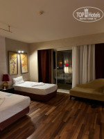Отдыхали в отеле с 26.09-3.10. Скажу честно, многие отзывы меня сначала сильно напугали. Чего только ни писали туристы- и еды нет, и номера ужасные и света нет. В итоге мне все более чем понравилось!. По питанию: оно было разнообразное каждый день, особенно ужины. Всегда несколько вариантов морепродуктов, мяса, птицы. Турецкая выпечка традиционная, огромный выбор десертов очень вкусных, свежайшая пахлава ( в ней то я разбираюсь). Блюда всегда вовремя пополнялись. Овощи, зелень, фрукты всегда были в достатке. На завтраках большой выбор сыров, колбасных нарезок, изумительные булочки. В один из дней был специальный стол с морепродуктами-огромные креветки, кальмары, мидии, красная рыба. К еде претензий никаких. По бару- местный алкоголь очень даже неплохой (пробовали виски и джин). На пляже все стандартно-лежаки заняты еще до завтрака, бороться с такими людьми бесполезно, которые положили полотенца и не приходят до обеда. Сам пляж хороший, чистый. Во время анимации мы всегда были где то на прогулке, поэтому сказать ничего не могу, но каждый вечер была детская дискотека. До старого города рукой подать-минут 15-20 пешком. С номером нам так же повезло, он был просторный, чистый с шикарным видом на море. Уборка была каждый день. На телевизоре есть несколько русских каналов, так же в номере есть минибар, сейф-все бесплатно. Кондиционер работал отлично. Единственный небольшой недостаток-это лифт, ждать приходилось долго в часы пик. Территория отеля очень ухоженная, зеленая. Я бы с удовольствием вернулась сюда еще раз. Пара слов о территории за отелем-есть аптеки, достопримечательности, мигрос недалеко, автобусные остановки, но нет ни одного обменника денег, а расплачиваться выгоднее лирами.