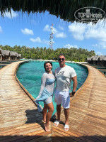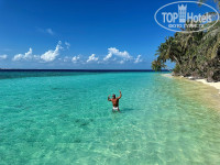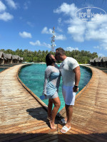 Резорт находится в океане в 50 минутах езды на лодке от Мале. Территория шикарная, зеленая, белый песок, прозрачная вода, разных цветов, красивые рыбы, ночью кормят акул, в районе 23.00 по местному времени на старом пирсе, фонарик есть в номере, зарядить можно самому или на ресепшн.На новом пирсе много рыб плавает вечером. Весь остров обходили кругом за 20 минут неспеша.