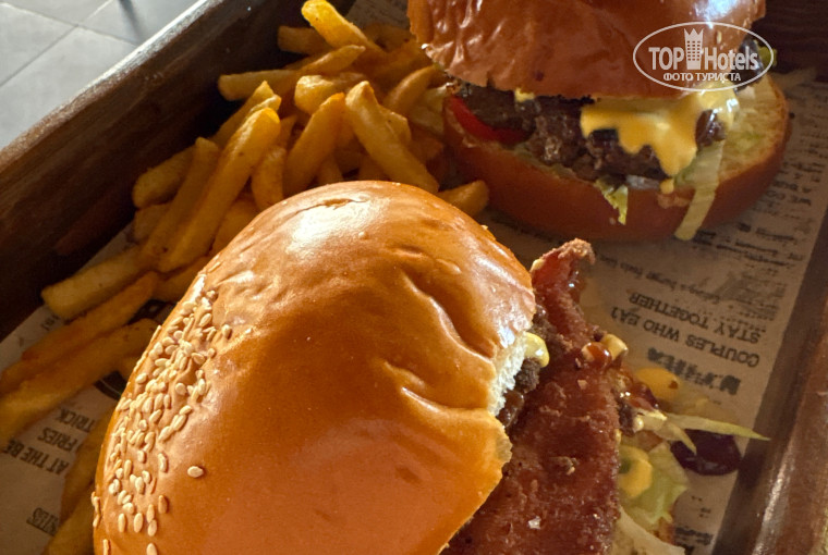 На территории есть кафетерий- бургерная. Там есть игры: пинг-понг, аэро-хоккей, бильярд. Заскучать не успеете. Бургеры в кафе тоже очень вкусные.