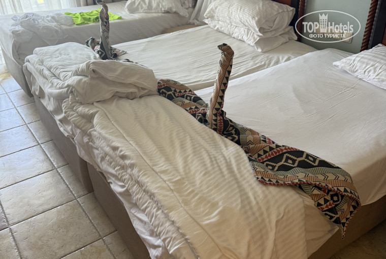 Аудио-отзывПосетили этот отель второй раз в этот же период времени. Получилось 13 полных дней, 9 дней все равно маловато было бы для такого шикарного отдыха. В отель мы приехали в 10.00, нас сразу заселили, не дожидаясь 14 часов. Вид с номера был на горы и аэропорт. Уборку номера делают качественно, кормят на убой голодным не возможно уйти.