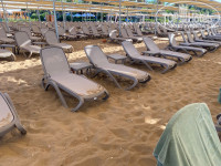 На пляже только в последние дни отпуска стали прибираться, мусор, конечно, каждый день убирали. Но столик мужчина протирал последние дня два у нас. Утром пришли, все столики были заставлены пустыми стаканами из под коктейлей, куча мусора. Часов в 9 приходил мужчина и начинал мыть пустые столики и отряхивать лежаки, хотя уже многие были заняты.