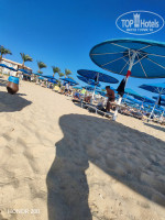 Пляж. Огромный! Много гостей с детьми разных возрастов. Лежаки - хватает, даже в час пик можно найти свободные. Полотенца получают на пляже, при заселении выдают карточки. Приходите на пляж отдаёте карточки и вам дают полотенца. Уходите с пляжа - возвращаете полотенца, вам отдают карточки. Полотенце можно брать в номер. При потере карточки штраф.