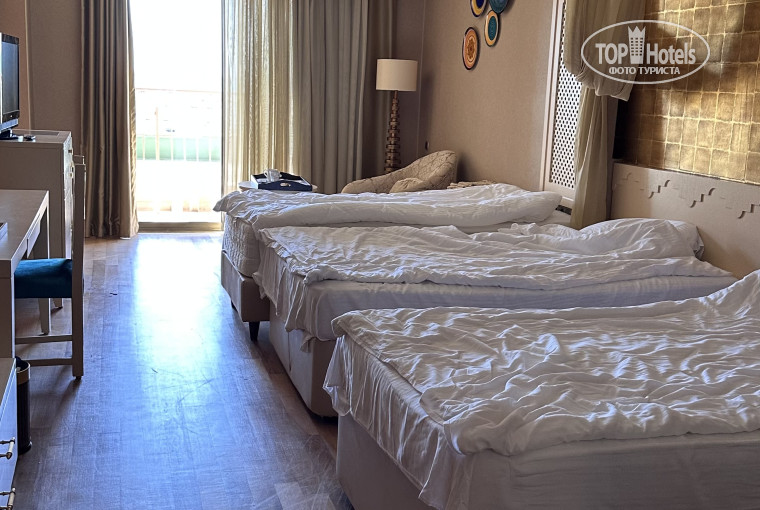 Территория отеля очень ухоженная, зелёная, просторная и продуманная до мелочей. Много бассейнов — для взрослых, для детей, спокойных и с анимацией. Всё чистое, за порядком следят постоянно. Пляж — большой, широкий, с мягким песком и удобным входом в море. Купаться приятно, море чистое и тёплое. Из пожеланий — можно было бы немного расширить пляжную зону и добавить больше шезлонгов, особенно в часы пик. Но даже с этим отдых на пляже был комфортным и приятным.