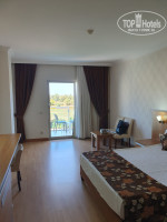 Привезли в отель в 11 часов утра, но я была неприятно удивлена, когда мы подъезжали к отелю, т.к. рядом с отелем пылящая стройка. Поэтому я решила точно доплатить за вид из окна на море и точно не на стройку(20 долларов было достаточно, мне дали вид на амфитеатр соседнего отеля и частичный вид на море) и меня сразу заселили в 11 часов. Взяла сейф(платно,2 доллара за день). Номер на 3 этаже дали огромный, семейный, одна большая кровать и 2-х ярусная для детей. Номера уставшие, но для того чтобы в нем только ночевать вполне достаточно. Отличный балкон и вид , который меня устроил. В момент заселения в ванной перегорела лампочка, я позвонила на ресепшн и минут через 15 пришел работник и поменял ее.