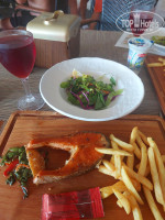 На пляже есть ресторан по меню (бургеры, лосось, говядина, макароны, фри). В баре с 12ч есть айран. Посуда в баре либо стеклянная, либо многоразовая пластиковая.