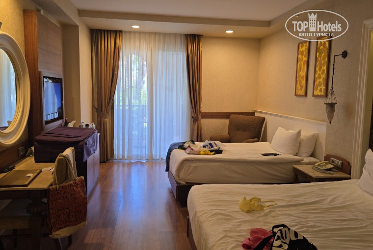 Мы с мужем каждый год ездим в Турцию вдвоем, чтобы провести весело и душевно время в романтической обстановке. Выбираем всегда очень хорошие отели, такие как Титаники , Каллинаны и так далее. В этом году выбор упал на Гюраль, потому что наш предыдущий оператор изменил даты вылета и нам срочно пришлось переделывать путевку и искать новый отель. В суматохе решили, что Гюраль - раз он премиум отель, значит, нам подходит. По приезду нас сразу проводили в номер, заселили, номер хороший, большой, добротный, немного старая мебель, конечно, но в целом очень хорошо. Выбирали номер с выходом к бассейну. В котором ни разу не искупались - вода ледяная. Напомню, это начало октября. Температура была 23-26 градусов. 3 дня шел дождь и 2 дня был сильнейший ветер. Ок, погода к отелю не имеет никакого отношения.