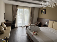 Номер у нас на 9 этаже. Боковой вид на море. С другой стороны виден гипермаркет Кинг Конг. Номер отличный, все работает исправно. В номере есть зонтик, фен не стационарный, зубная щетка, расческа, бритва, шапочка. Дозаторы с гелем для душа, шампунем и кондиционером для волос. Кондиционер работает отлично, нет от него посторонних запахов, только свежесть. Есть телевизор. Из бесплатного пополнения - каждый день две бутылки воды 0,33. Остальное за плату в мини-баре (в два раза дороже, чем в гипермаркете Кинг Конг). Есть чистый мини-холодильник. Один белый халат. Вопрос почему на двоих один остался открытым. Тапочек нет одноразовых, стоят ношенные отельные вьетнамки, которые мы даже не трогали руками)) Уборка неплохая, но не супер стерильно. Убирают каждый день. Смена постельного белья через 2-3 дня. Презенты не берут от слова совсем. Плохо только, что уборка была в 15-17 часов. Если вы повесите табличку не беспокоить, а уборка по графику уже была, то горничная больше не вернется.