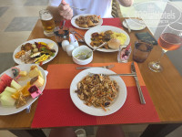 Отдыхали с мужем,сначала в пляжном бунгало,потом на водной вилле.Приятно,что при заселении подарили вино с фруктами и украсили номер(медовый месяц),жаль как писали выше категорию не повысили,но в итоге в пляжном тоже очень понравилось.При переселении в водное не очень общительная девушка Мира пыталась сдвинуть нам заселение с 10.30 на 12.30(вилимо других хотела заселить),так как было письмо от отеля,что в 10.30,посое долгих моих возмущений номер резко нашелся...Девушка реально очень необщительная и видно ее только кушающей в ресторане,сколько ходили на ресепшн ее там не было...нп вопросы отвечает неохотно...Сотрудники отеля большие молодцы,очень стараются,спросила бывает ли сырая рыба,так мне ее лично приготовили и принесли,было очень приятно🤗🤩в водном бунгало не работал кондиционер,с 1й попытки не починили со 2й разобрав весь стал лучше работать,но не как положено и ни как где жили до...Питание да голодными не будете,но я не люблю плавающее в чем-то мясо,а большинство такое...мало гриля...вкусный вок,девочка на салатах очень приятная и позитивная...в 1й день был вкусный десерт типо тирамису,после его не было((фрукты вкусные только в снек баре,почему-то в столовой не было ананасов,а там были.. Курицу гриль тоже соусом заливали зачем-то(((Мясо с гриля пресное и суховатое.Погода вначале расстроила,проливные дожди с 13го по 16е.10 и только пас 3 дня было солнечно,но купались всё время.Приятным сюрпризом были именные термосы при отъезде и провожающий махающий персонал.Спасибо за отдых.