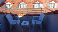 Приехали в отель примерно в 7.00 утра. Как обычно в паспорт была вложена некоторая сумма, с просьбой заселить побыстрее. Соответственно денежные средства были приватизированы, чел с улыбкой отправил нас на завтрак, сказав, что после завтрака все будет ОК. Но не тут-то было. После завтрака появилась Нурия, и с печальным видом объявила нам, что номеров нет и не ожидается, предлагает нам на 2 дня переехать в другой отель. Типа в 500 метрах, на деле дальше. Отель FAN SAN SMART Hane SAN. После ночного перелета, немного устали и решили не спорить и поехали в HS. Отель с небольшой территорией, номера под убитые, но жить можно. Номер дали сразу на мансарде, с видом на соседние балконы. Такое ощущение, что с соседями напротив, можно здороваться за руку.