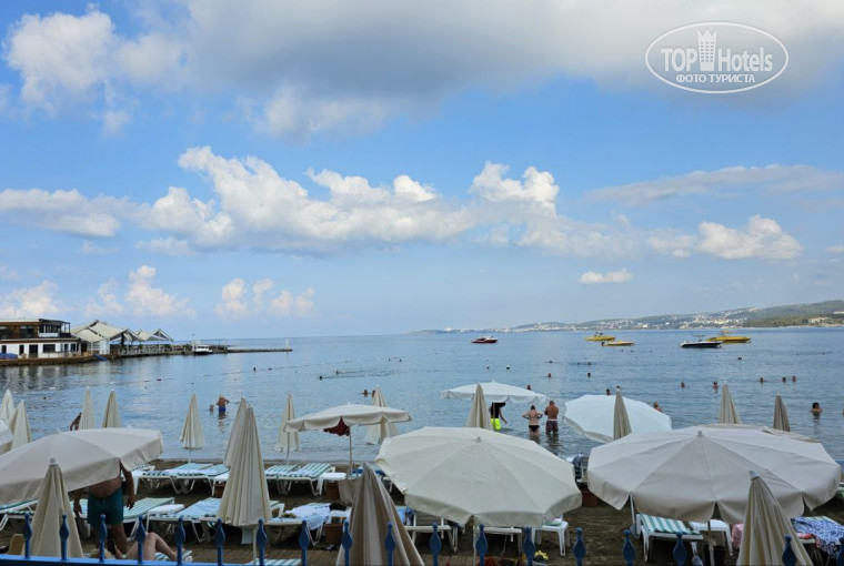 Пляж узкий и лежаки очень плотно, но заход в море и само море великолепны! Очень чистое и спокойное море, заходить комфортно, заход плавный, песочек. Жаль лишь наблюдать загорающие по полдня пустые полотенца, было бы здорово, если бы бич бои просто их убирали, давая возможность полежать всем желающим.