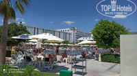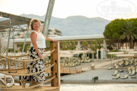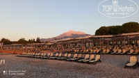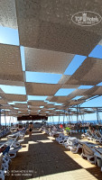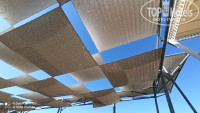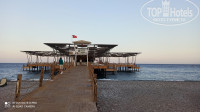 На территории 2 бассейна глубиной 140 см прямоугольной формы, детский бассейн. Летом в отеле отдыхало много европейцев, они предпочитали отдых у бассейна. А в октябре я отдыхала на школьных каникулах (я учитель), было много российских семей с детьми-школьниками, большинство стремились побыть у моря. Везде лежаков хватало. На пляже мелкая галька и песок, при заходе в море на дне галька покрупнее, но не валуны. Можно зайти и с пирса. Про него отдельное слово. Обычный узкий деревянный пирс превратили в довольно обширный деревянный пляж с удобными площадками для спуска в море (там и ополоснуться из душа можно), множеством лежаков, баром. В этом году еще и интересный навес из тканевых квадратов, расположенных в шахматном порядке, сделали. В октябре часть квадратов сняли, чтобы больше солнышка было на пирсе.