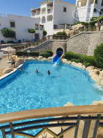 Часто читали в отзывах про проблему со свободными шезлонгами, в 8-9 найти шезлонги было проблемой, мы занимали рано утром, нас было 3 человека. Но уезжали на парасейлинг приехали в районе 12 часов и спокойно нашли место на пляже. Заход в море с берега хороший и широкий, понтон тоже достаточно широкий, и на пляже и на понтоне сидят спасатели. Сервис на пляже и у бассейна хороший, уносят мусор, носят воду и прохладительные напитки, влажные полотенца. В баре неплохой выбор местного алкоголя и соков. Хорошо обустроен снек бар достаточно столов и посадочных мест под навесом. Зонты соломенные, большие, имеются крючки на зонтах, столики, пепельницы, урны. Минус на пляже в том, что душ и кран для мытья ног находится в части где дайвинг центр, в стороне бара нет душа и крана для мытья ног. Полотенца выдаются по карточной системе и нет привязки к номеру и к месту где вы их взяли. Бассейны чистые, есть 2 джакузи, горка и бар у бассейна. Много водопадов, есть 2 грота и ленивая речка.