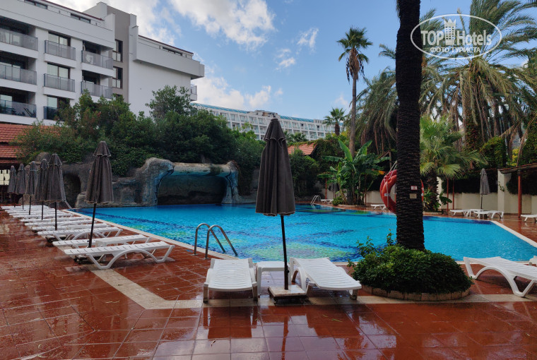 Летали в этот отель во второй половине октября 2025 года. Отель расположен недалеко от центра Мармариса, что создаёт прекрасные возможности для прогулок по городу. Территория небольшая, вытянутая, два основных корпуса. Пляж свой, маленький, но есть пирс с удобным входом в воду, с лежанками, подушками. Кроме того, на пляже есть столики, можно посидеть с напитком из бара. Пляж совсем рядом с отелем, через пешеходный променад. На территории несколько баров, спа-центр, игровое пространство, анимация по вечерам.
