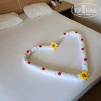 НОМЕР - отель и номера уставшие сильно. Номер с балконом, курить можно на балконе. Вид красивый. Убирались ежедневно, мы оставляли старые доллары и нам делали даже лебедей. Еще шоколад Аленку оставляли, но похоже деньгам то рады были больше. Кондей не включали ни разу, жарко не было. Одеяло чуть толще простыни, но не мерзли, балкон закрывали. Холодильник в номере, сейф, чайник, тапочки, полотенце, жидкое мыло, фен, чай, кофе, сахар, вода 1,5л., бумажные стаканчики. Воды нам не хватало, покупали внизу в магазинчиках, т.к. в доступе ее нет.