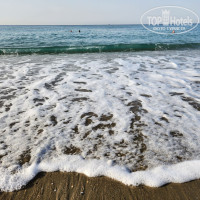 ПЛЯЖ - галька, мелкая галька, песок. В основном галька. При заказе тура я просила песок. Море было с волнами, поэтому выносило много водорослей, палок от пальм и пр. На пляже валялись бычки, стаканы, плохо убираются. Лежаков много сломанных, проваленных. Так, матрасы в основном норм. Плавают периодически корабли очень красивые как из пиратов с мачтами. Дежурит спасатель.