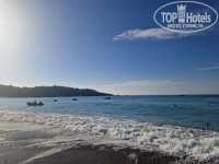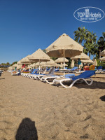 Пляж. Заход в море не очень, камни. Шезлонги уже до завтрака занимают полотенцами и приходят только к 11.