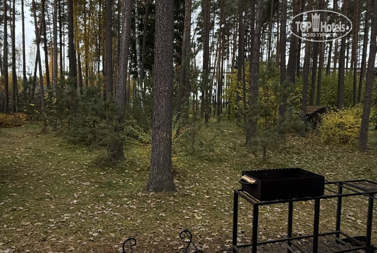 Сам отель расположен недалеко от аэропорта, что удобно, если надо переночевать и потом вылетать, но можно приехать и просто отдохнуть, насладиться прекрасной природой или отметить праздник! Находится в окружении леса, есть небольшое озеро на территории, беседки, скамейки, летом вроде как батут ставят. Территория красивая с деревянными домиками и самим отелем с номерами.