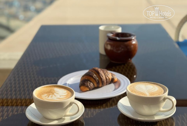 После завтрака можно подняться наверх и выпить отличный кофе с круассаном или пирожным в кофейне возле лобби.