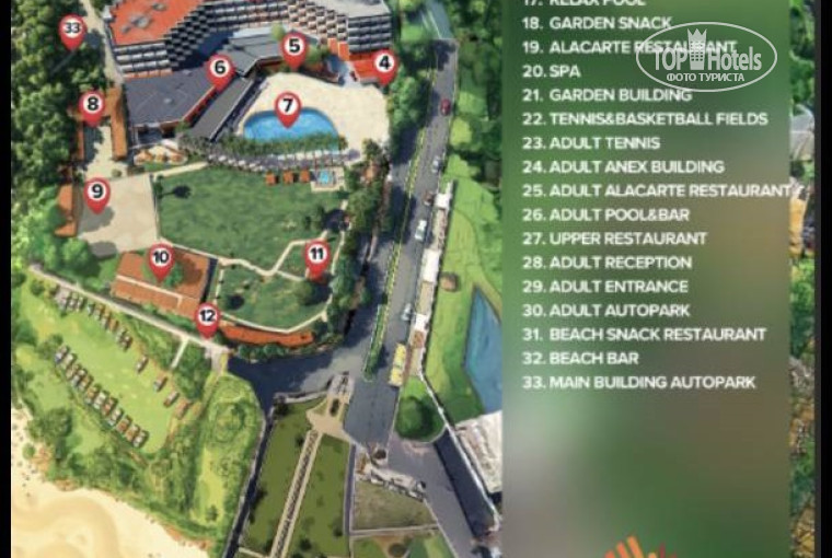 В целом хороший отель достойный своих звезд за свою цену. Заселили раньше, но подходили на ресепшен 4 раза (заколебали в общем). Организация досуга хорошая и у взрослых и у детей. Номера убирают каждый день, кухня полна вкусностей, мороженное, вкуснейшие лепешки у бара, нам очень понравился чечевичный суп в рестике (с сухариками прям ваще самолёт). До моря 5 минут пешком либо на маленьком электро автобусе, пляж песок плюс галька, бар. В снек баре есть крепкие напитки (ром, виски, текила, водка, ликеры, коктейли и т.д.), в ресторане можно взять вино и водку. Персонал вежливый, многие говорят по русски. Во время нашего проживания основной контингент это были ребята из РФ, дальше немцы и по немногу другие страны европы, азии. Детей с 10 утра ждут в детском клубе, работают два аниматора, по русски не говорят, только инглиш, но как-то с детьми общий язык находили, дочь с удовольствием ходила к этим девочкам. Аниматоры на пляже и у бассейна для больших мальчиков и девочек. Территория отеля красивая, зеленая, перед входом растут мандарины, несколько бассейнов на выбор, аквапарк достойный отдельно для детей и для взрослых ребятишек. Каждый вечер дискач для детей, выступления различных ансамблей окромя воскресенья. Guest Relation менеджер Анастасия рядом с ресепшеном поможет с решением любого вопроса, за что ей отдельное спасибо. Она же подсказала как съездить в Манавгат, Сиде (храм Аполлона) и в Аланию.