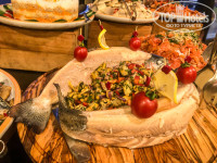 Питание разнообразное, претензий нет. Посетили два ресторана по системе A LA Carte: итальянский и рыбный. Если в основном ресторане ужин занимает полчаса, то здесь проводишь более 2-х часов. По такой же системе работает бар на морском пляже.
