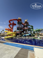 Аквапарк отличный, горки разнообразные. Вода в бассейнах прохладная, но у нас погода была +32 днем. Один бассейн около пляжа точно самый теплый. Территория большая, плюс можно гулять в соседнем Пэлас. Ухоженная, травка-кустарники, везде стоят диванчики с навесами. Много мусорок чистых на территории. Есть мини-гольф и мини-теннис.