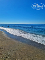 Нам повезло с погодой и неделю мы с удовольствием купались в море. Море было чистым, пару дней были красивые волны. Заход в море приятный, мелкая галька, мы без проблем заходили босиком.