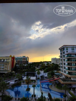 Территории,как таковой нет. Основное место занимает бассейн. До пляжа пять минут вразвалочку. Вай-фай работал только в холле у рецепшена.