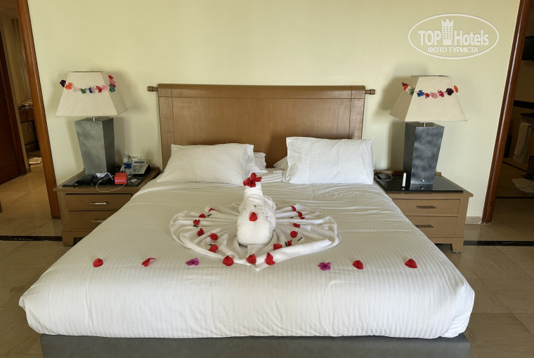 Прекрасный 5* отель в восточном стиле с обширной территорией и одним из самых больших и красивых рифов в Шарм Эль-Шейхе. Территория отеля очень ухоженная и привлекает многочисленной зеленью пальм и кустарников. Туристов в отеле достаточно много всегда, поэтому мы выбрали проживание в отдельно стоящих виллах Regency Club. Виллы расположены вокруг бассейна с видом на море и радуют своей тишиной и спокойствием. В нашем случае мы выбрали люкс Regency Parlor, который находится на 2-м этаже виллы, что вполне достаточно для семьи с одним ребенком. Если необходимо 2 отдельные спальни с общей гостиной зоной и кухней, то можно выбрать Дипломатический люкс, который расположен на 1-м этаже виллы. Интерьер в номерах отеля добавляет особый шарм и аутентичность восточного мира. В клубном лаундже организованы завтрак, обед и ужин, а также напитки в течение всего дня. Предоставляется доступ к отдельному клубному пляжу с баром. Пирс уходит на край рифа, откуда можно наслаждаться плаванием и снорклингом вдоль и внутри рифа, наслаждаясь красотой подводного мира. В течение всего дня в отеле организована развлекательная программа. Несколько ресторанов привлекают своим разнообразным питанием. Персонал старается сделать всё необходимое, чтобы получить огромное удовольствие от отдыха на солнечном берегу Красного моря. Очень приятно отметить заботу и внимание обслуживающего персонала в номерах, наличие всех необходимых ванных принадлежностей, халатов и тапочек, а также утюга и гладильной доски.