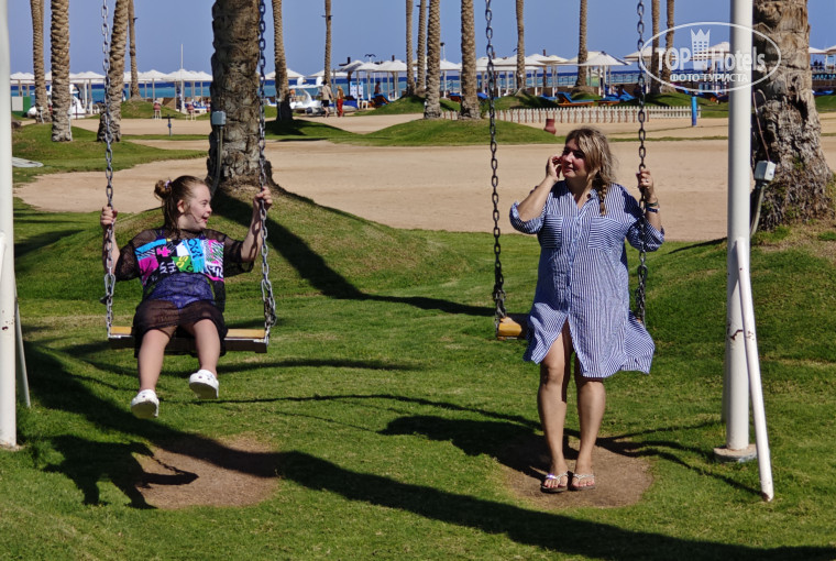 Территория отеля ухоженная, просторная и зелёная. Много мест отдыха для взрослых и детей, удобные шезлонги и зонтики прямо возле бассейна и пляжа. Очень понравились детские площадки и анимационные программы. Днем можно бесплатно покататься на четырехколесном велосипеде, а так же научится стоять на доске на искусственной волне.