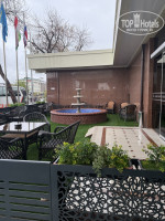 Ресепшн чисто уютно. Отель гостиничного типа, территории нет. Для курящих есть места для курения с диванами на балконах из коридара на каждом этаже и внизу рядом со входом столы и столики + фонтанчик.
