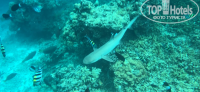 То, зачем прилетели - океан и риф - просто сказка! Риф великолепен, мы плавали вокруг острова, где-то час занимает обплыть весь, если не зависать над особо понравившейся рыбой или кораллами. За две недели увидели практически весь подводный мир океана (кроме китов, дельфинов и мант, конечно). Акулы-няньки и огромные, и маленькие, белопёрые и чернопёрые, рифовые рыбы всех мастей, осьминоги, с черепахами плавали каждый день, насчитали семь штук. Ракушки все живые, нашли даже Тритона, большой был, в Египте таких больших не было. Штук семь насчитали Терновых венцов, беда, могут риф захватить, вообще звёзд морских много всех мастей. Один раз рано утром увидели прямо у берега отдыхающего ската-хвостокола, огромный, в диаметре метра полтора, я таких не видела больших. Правда, жаль, ни разу не видели богулов, здесь их, видимо, нет. На Биаду их много было. Орляков тоже мало, раза два проплыл на глубине. С этого острова не возили, по крайней мере, при нас, на экскурсии, хотели на мант, но - увы. Зато домашний риф компенсировал всё, этот остров входит в лучшие рифы на Мальдивах. И да, по сравнению с Биаду - здесь риф живой, кораллы живые, не убитые цунами. Просто надо плавать с маской, смотреть и видеть. Так же, как мы, плавали только пара немцев. Мы с ними делились, где кого видели, все довольны.