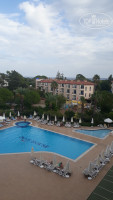 Территория отеля маленькая, номерной фонд состоит из одного 4-х этажного здания Г-образной формы. Окна номеров выходят на бассейн и на дорогу. Около бассейна достаточно шумно, днем после обеда детские крики и веселое катание с горок, а вечером анимационные программы, дискотеки и шоу, танец живота, огненное шоу и др. Дискотека заканчивается в 23 часа, музыку выключают, но отдыхающие продолжают громко радоваться жизни, еще часа полтора, пока у них не закончится спиртное, набранное предварительно в баре. Так, что, если у вас нет желания радоваться вместе с ними, вместо того чтобы спать, берите номер с видом на дорогу (вдалеке видны горы), там хоть изредка проедет машина или мотоцикл, и все, тишина.