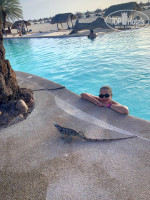 Игуаны - их здесь оч много . Штук 30 наверное . Они залезают на пальмы и сидят там , как в гнезде . А когда хотят вниз - просто падают в бассейн.