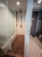 В ванной очень маленькое зеркало, что непривычно сначала. В душе были шампунь, бальзам, гель для душа. Вода горячая с хорошим напором.