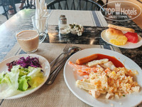 Завтраки либо на 1 этаже основного корпуса, либо в кафе , кт напротив 3 корпуса. Завтраки - очень средние. Были яйца жаренные, скрембл; рис /рис с овощами/рис с курицей; супы; зелень, ананасы, арбузы, канталут. Соки (скорее "инвайт"), вода , молоко , хлопья. Голодным не уйдешь, но восхищения не будет))) И всё это как -то по всей территории кофе раскидано, что-то тут брать, что-то в другом конце кафе. Привыкаешь, конечно, потом, но не очень удобно.