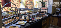 Аудио-отзывПрилетели мы довольно рано так как у нас ранний вылет был. Нам сразу дали в отеле браслета сказали номера ещё подготавливают мы пошли завтракать и пошли купаться. К двенадцати подошли на ресепшен для получения номера. Первый номер дали нам не особо хороший мы решили его поменять , дали нам второй который был не с ключ картой а простым ключом ,то есть это апартаменты который оказался ещё хуже но так как мы были в дороге всю ночь и были уставшими мы согласились и на него. На следующий день мы подошли на ресепшен для того чтобы поменять номер , и тут мы увидели сотрудника по имени Ольга которая нам все быстро помогла . Без неё мы бы наверное долго решали этот вопрос она сделала все оперативно и мы остались довольны номером. Так что имейте в виду если какие-то вопросы Ольга работает там уже полтора года она поможет вам в любом вопросе. По питанию как обычно в египте все включено на завтрак и на обед и на ужин всегда есть что поесть. Фрукты, мясо, рыба, курица и как обычно у них всегда много вкусных десертов. Рестораны аля-карт ходили только в итальянский так как мы были с детьми. В итальянском очень понравилось стейк из говядины запечённый морепродукты пиццу не рекомендую потому что она совершенно обычно которая в обычном ресторане есть. Днём на барах есть всякие закуски они находятся около бассейна второй около аквапарка и один на пляже около моря. После трёх часов дня начинают давать мороженое и пончики. На территории есть несколько бассейнов которые ближе к отелю большой был холодной , а детский так как был не глубокий был теплый. Правее от моря было ещё два бассейна один большой для взрослых и детский. Около этого бассейна проходит анимация. А слева от моря был аквапарк и лежаки для тех кто на море. по поводу лежаков речь отдельная ,в 7 метро уже начинают занимать лежаки поэтому кто встаёт поздно приходится искать их. Здесь странно что не работает система что в течение часа если ты не появился убирает твои полотенца хотя вывеска об этом есть. Левее от лагуны проход на пляж ,около моря вход каменистый и коралловые обломки поэтому лучше покупать коралловые тапки и желательно иметь маску либо очки для просмотра подводной фауны. В вечернее время начинается детская анимация после неё идёт взрослая анимация очень красивое файр-шоу. В целом если не обращать на всякие мелочи внимание то отель отличный можно всегда хорошо отдохнуть весёлый персонал весёлые гости не было пьяных быдло ,очень все культурно в отеле процентов семьдесят немцев где-то тридцать русских и там остальных немного.