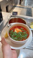Регулярно попадалась русская кухня: борщ, блины, оливье; наваристые говяжий бульон и куриный суп.