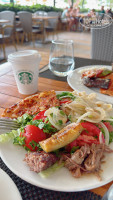 На территории — Starbucks (безлимит, нормальный выбор напитков). Но очень неудобное время работы: с 10:00 до 20:00 многим ли людям актуально кофе в 8 вечера? а в 8 утра на завтрак?