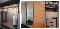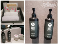 Мокрая зона с умывальником, на столешнице косметические принадлежности, в тубах жидкое мыло и молочко для тела, фен и плойка, увеличительное зеркало. По бокам от умывальни туалет с деревянной дверью и душевая со стеклянной. В душевой современная сантехника, удобно выставить неизменный температурный режим воды и регулировать нажатием кнопки обычный душ и тропический. В стену вмонтированы тубы с шампунем и гелем для мытья в одном флаконе, а кондиционер в другом. По желанию открывается или делается непроницаемой прозрачная перегородка между номером и помывочной кабиной. Полотенца в достаточном количестве, банные большие и мягкие, отлично впитывают влагу.