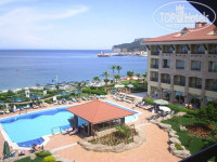Находится на 1-ой линии, в центре г. Кемер. Пляж собственный, галечный и большой; совсем рядом – городской платный песчано-галечный пляж. Пляжные полотенца – 10$ депозит.