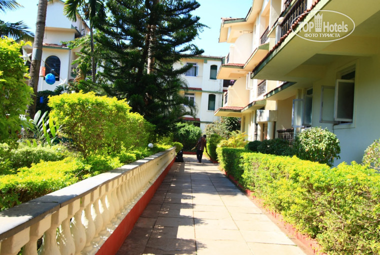 Мало классических руссотуристо :) Большой комплекс относящийся к гостиничной сети, все фирменное такое, брендированное ) отель далеко не новый но это не напрягает, большой двор с деревьями, бассейном (в котором впрочем никто не купается ибо зачем оно надо) и тд. номер нам достался выходящий окнами на улочку примыкающую к центральной, шумновато но это же Калангут ) ожидать он отеля в Калангуте тишины неразумно ) к бесконечным би би фа фа ночью привыкаешь быстро и потом не обращаешь внимания. Номер огромный, с большим холом, 2мя туалетами, спальней и 2мя балконами. все аскетично но аккуратно и вполне достаточно. Отличное белоснежное постельное белье из хорошей ткани.