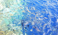 Рыбы которых видели с понтона- КРАСОТА - синие ( огромные с полакулы длиной), зелёные, чёрные - всехх цветов, как в аквариуме побывал. А уж жёлто-чёрные ( размером с ладонь )- те плавают прямо у берега, зашёл по-щиколотку и..... они тут как тут...