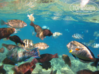 С правой и левой стороны прекрастные каралловые рифы-непожалейте денег купите маску с трубкой-13фунтов, обувь специальную-6фунтов и чтобы делать подводные фото-специальный водонепроницаемый чехол на фотоаппрат, и окунитесь в подводный мир красного моря, мы плавали каждый день и не переставали удивляться. видели даже мурену.В лауне делать нечего, если просто поплавать.