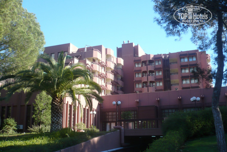 19. Территория отеля не сильно большая, но сильно зеленая. На ней присутствуют: много теннисных кортов, три бассейна (плюс еще крытый), баскетбольная и волейбольная площадка, амфитеатр, пара-тройка закрытых зданий (наверное секретные лаборатории), пляж, кошачий дом, несколько баров. Зелено. Мило. Лежаки стоят на всех лужайках, что очень удобно для пьяных русских туристов, которых тут, к сожалению, нет.